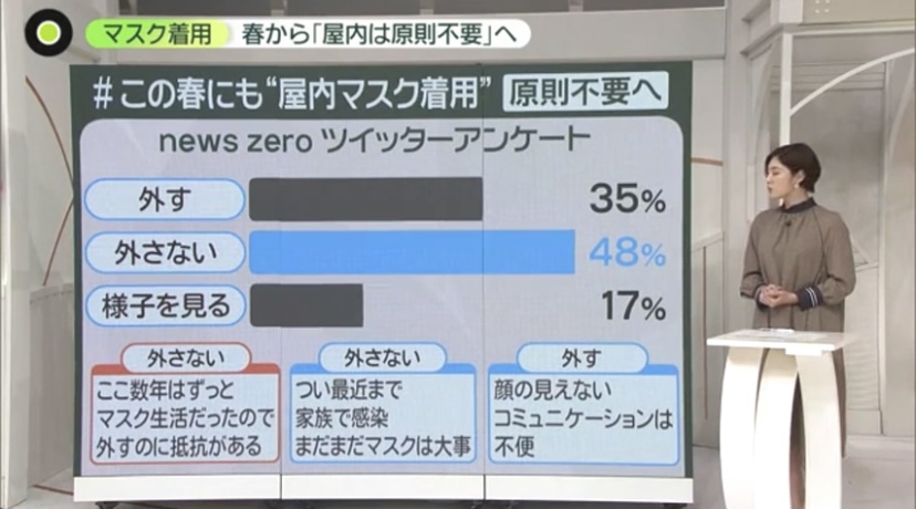 【画像】今後もマスクし続ける人、5割もいるwwwww