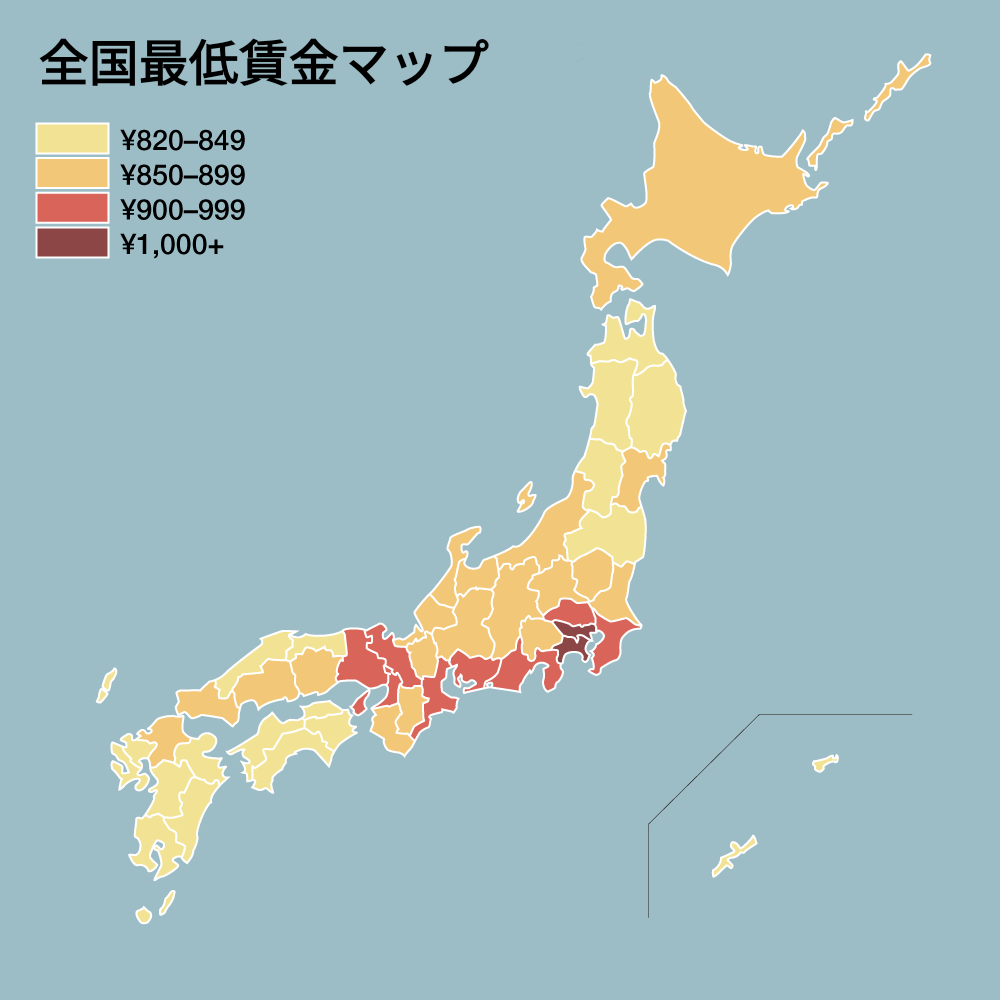 【画像】全国最低賃金マップがこちらwwwwwwwwwwwwwwwwwwwwww