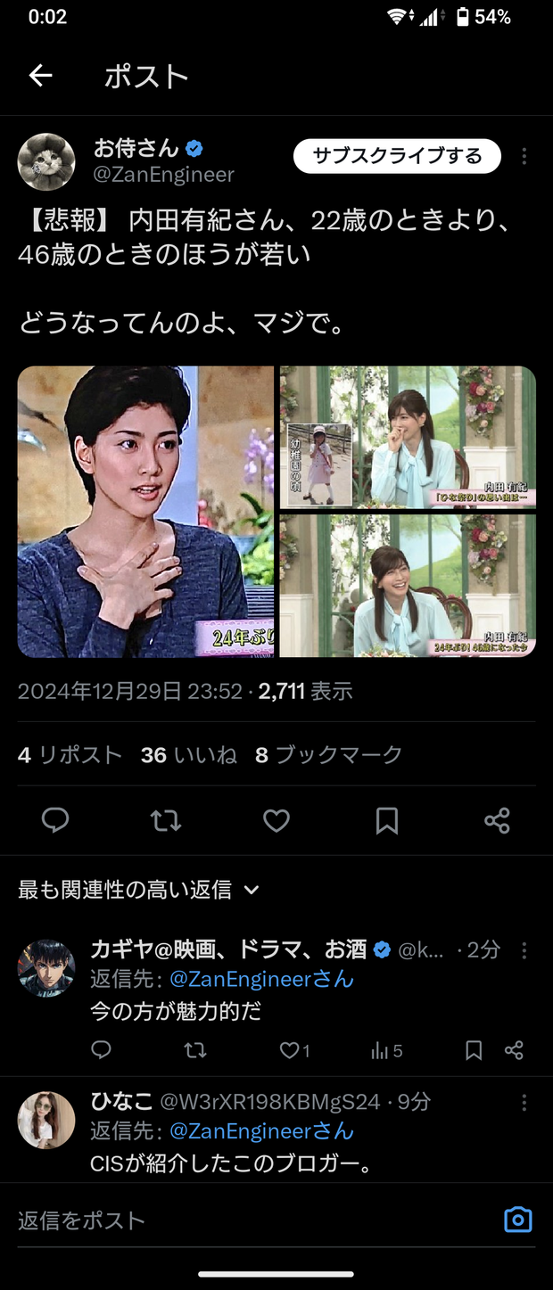 【悲報】 内田有紀、22歳のときより、46歳のときのほうが若い。 pic.twitter.com/LkEeAgFivf— お侍さん (@ZanEngineer) December 29, 2023転載元スレッド:https://hayabusa3.2ch.sc/test/read.cgi/news/1735487892/