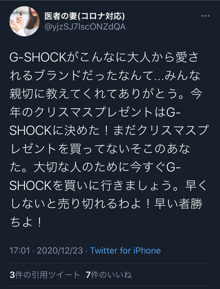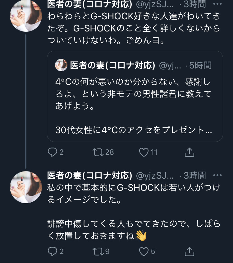 【画像】医者の妻「4℃は男ならGショックをもらうようなもん。」←コレwwwwww