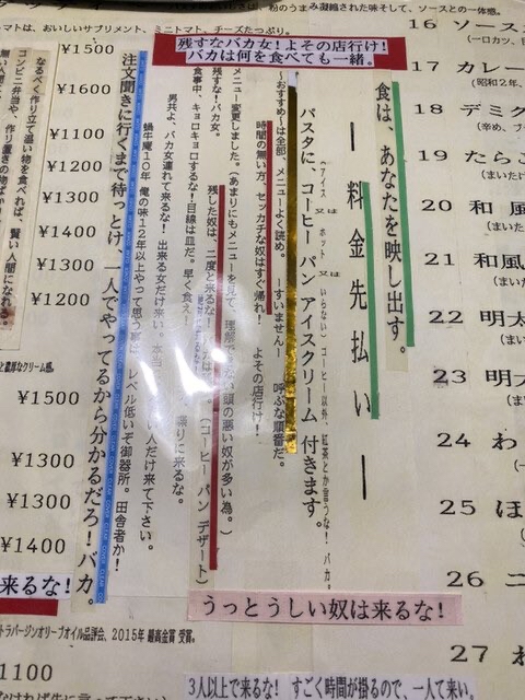 【画像】名古屋のパスタ屋、怖すぎる・・・・・