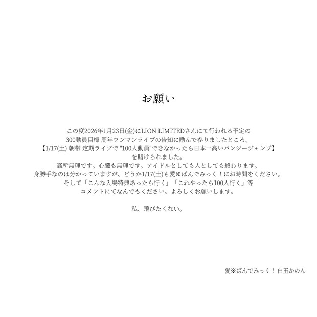 【画像】地下アイドル「客100人来ないとバンジージャンプさせられる!助けて!」