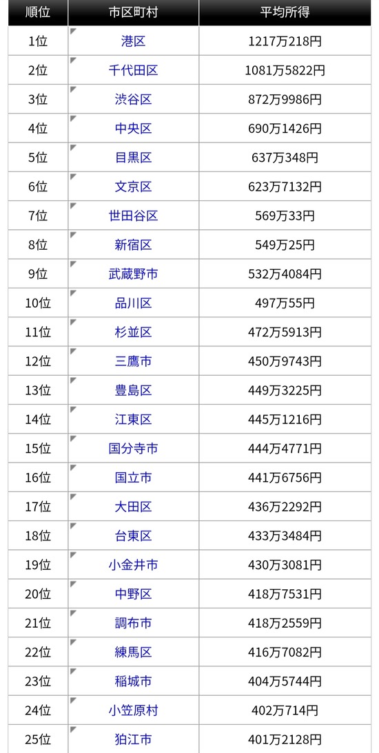 【画像】東京23区と政令指定都市の平均所得を比較した結果がこちらwwww