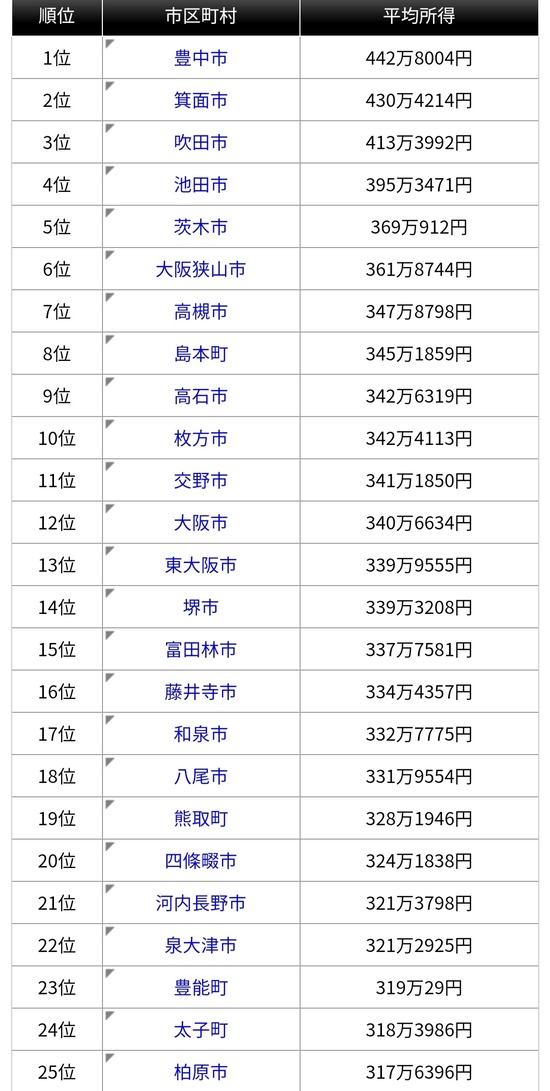 【画像】大阪府民の平均所得、いくらなんでも低すぎるwwww