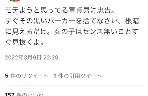 【画像】女「モテない男よ、パーカーを着るな」←これwww