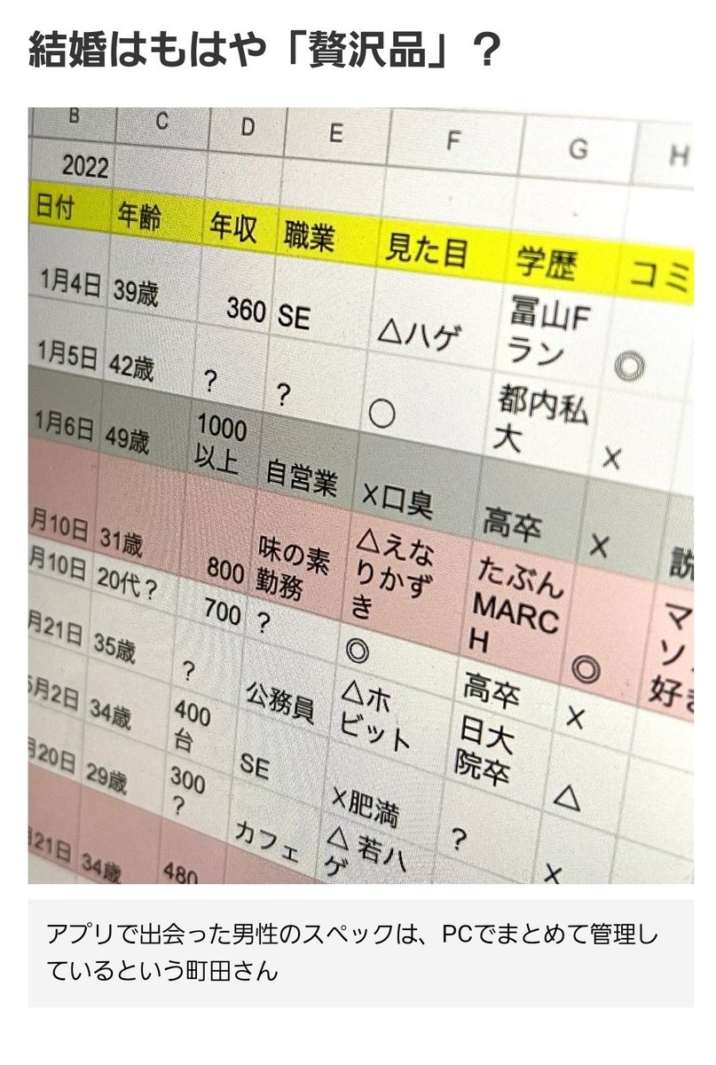 【画像】婚活女性さん、アプリで出会った男性のスペックに関するコメントが辛辣すぎる