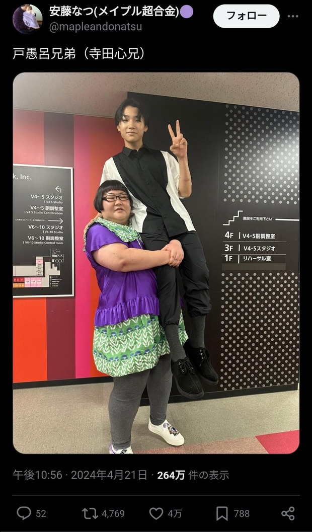 1 : 牛乳パック@生活保護3年目横浜県民 ◆9yhj/qADvw (ジパング) [IT] :2024/04/27(土) 13:27:50.68 ID:vlxp2BfL0●.net BE:253542839-2BP(2000)元子役・寺田心さんの成長スピードに驚く人続出。7年ぶりに人気芸人に担がれ「天井に頭ぶつかりそう」と話題に(省略)全文https://news.yahoo.co.jp/articles/fd9086702a46d88318fd445e5d3c0c70e4df1f7c