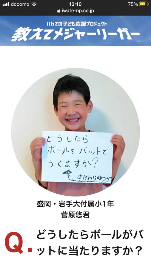 【画像】岩手県、子供の質問をメジャーリーガーに答えてもらう神プロジェクトをやっている模様www