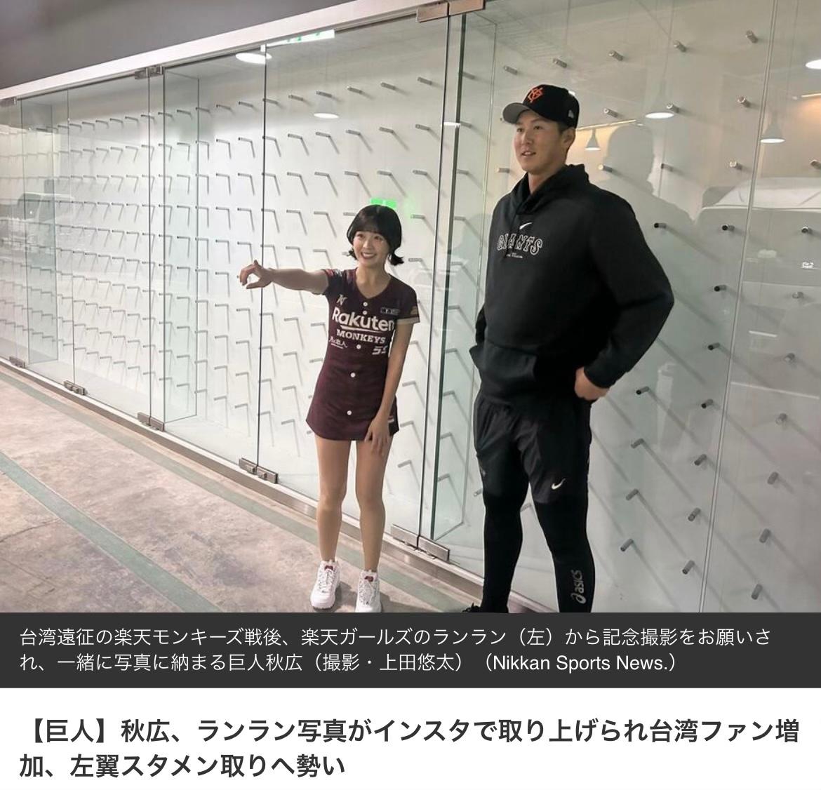 【画像】巨人秋広と台湾美人チアガールのツーショットwwwww