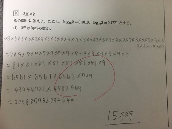 【画像】数学テスト「3の30乗は何桁の数字か?」 学生「うーん」