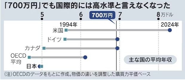 【画像】日本の30年間での平均年収の伸び、すごすぎて限界突破するwwwwwwwwwwww