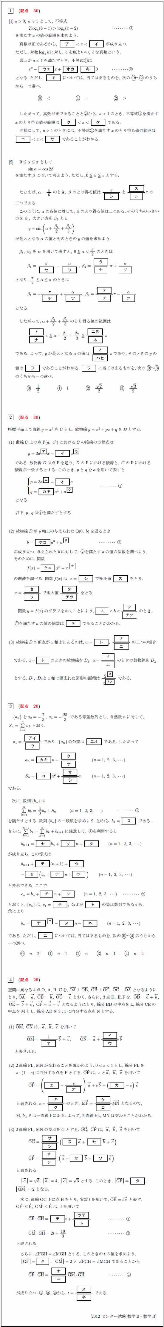 2012年 数学Ⅱ・数学B (平均 51.16)