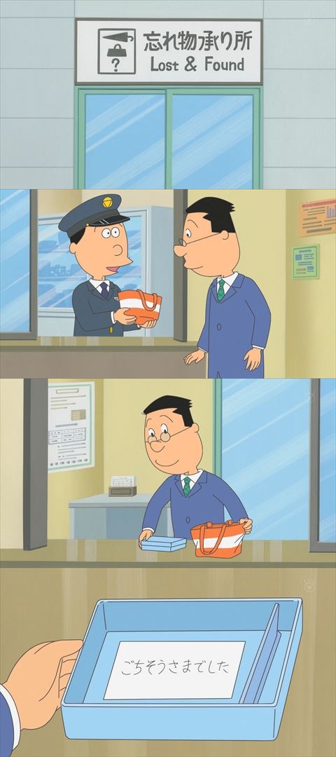 【画像】昨日のサザエさんの電車に弁当を忘れた話がヤバすぎるwwwww