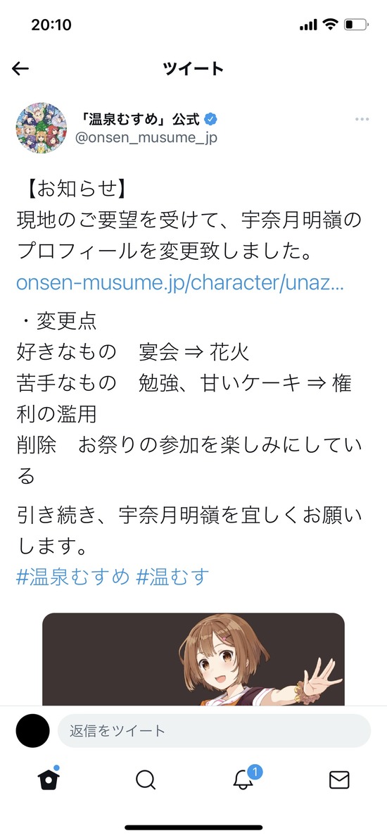 【画像】温泉娘公式、キャラの苦手な物を「勉強、ケーキ」から「権利の濫用」に変更してフェミブチギレwww