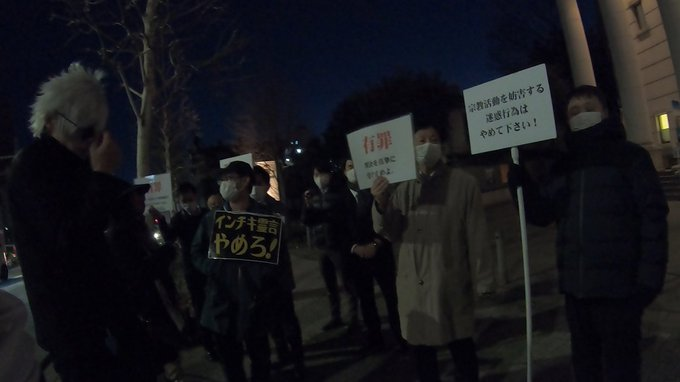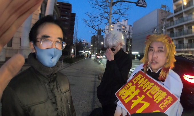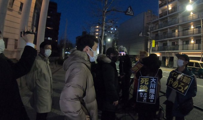 1: 以下、ニュー速クオリティでお送りします 2022/02/07(月) 16:37:54.09 ID:ns9jXRT/F 本日、#幸福の科学 の東京正心館前で、『 #鬼滅の刃 』の #吾峠呼世晴 先生の霊言を勝手に降ろし『 #呪術廻戦 』に便乗した法話を発表した #大川隆法 への抗議活動を行ないました。妨害しに出てきた教団職員に対して煉獄さんと五条さんもお怒りです。