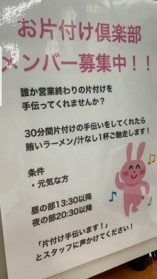 【画像】片付け手伝えばラーメン無料で食わせてくれる店がある模様www