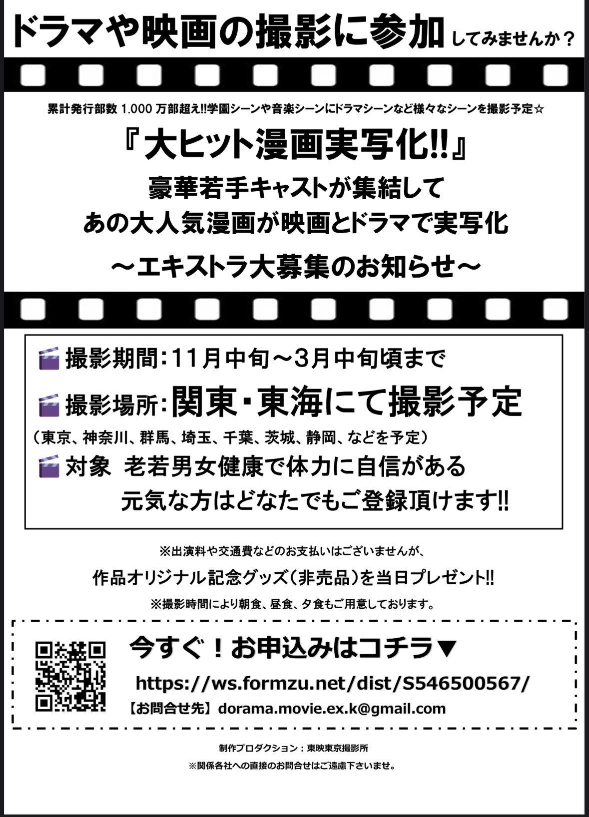 【画像】発行部数1000万部超えの大人気漫画が実写化でエキストラを募集中www