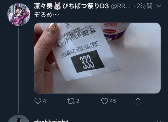【画像】美人コスプレイヤーさん、レシートがゾロ目だったのが嬉しくてウキウキでtweetしてしまうw