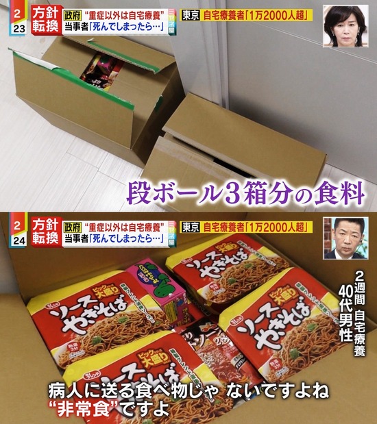 【画像】自宅療養で苦しんでいる患者に保健所が届けた食事をご覧くださいwwwwwwww