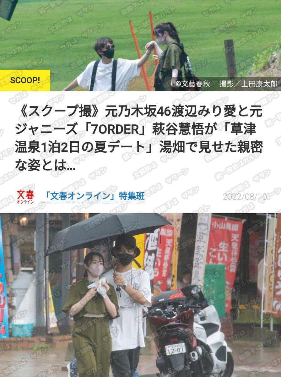 文春から渡辺みり愛さんと元ジャニーズ男性の熱愛報道