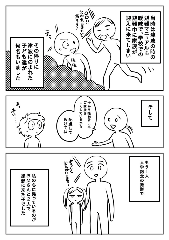 東日本大震災から10年 被災地の写真スタジオで働いていた人の経験を描いた漫画が教えてくれること東日本大震災の被災地で、写真スタジオのスタッフとして働いていた経験を描いた漫画が、写真や撮影を通して見える