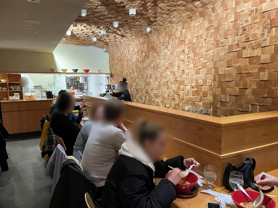 そんな日本のラーメン店で見かけるシーンとは異なり、マンハッタンの一風堂では、お酒を飲みながらラーメンを食べる、デート中のカップルや、