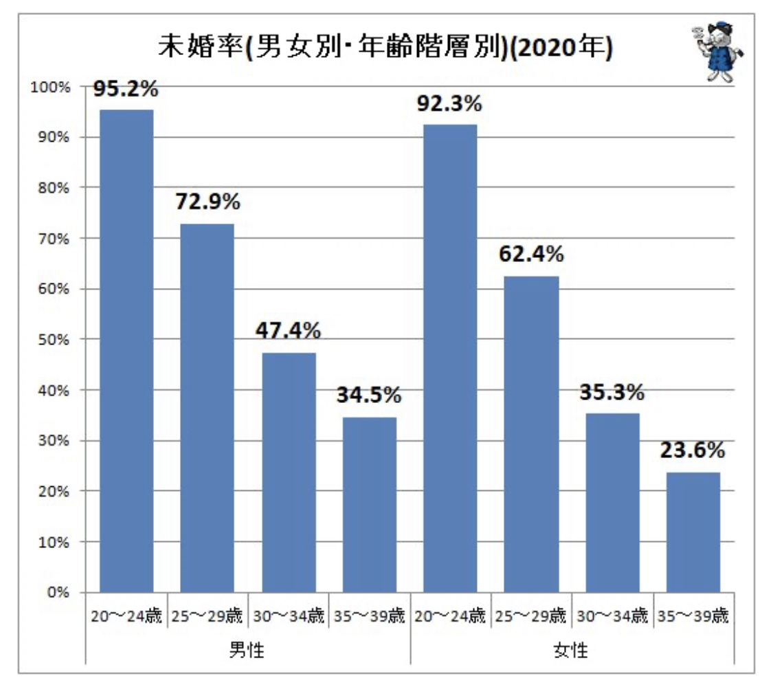 【画像】30代の未婚率、高すぎるwwwこれマジ??