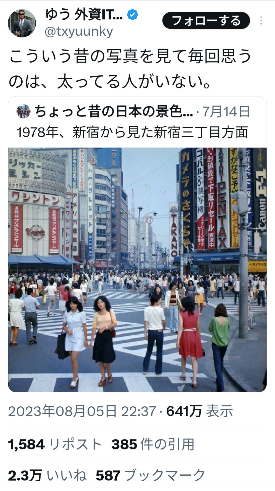 【画像あり】50年前の日本、デブがいなかった!!!!!!