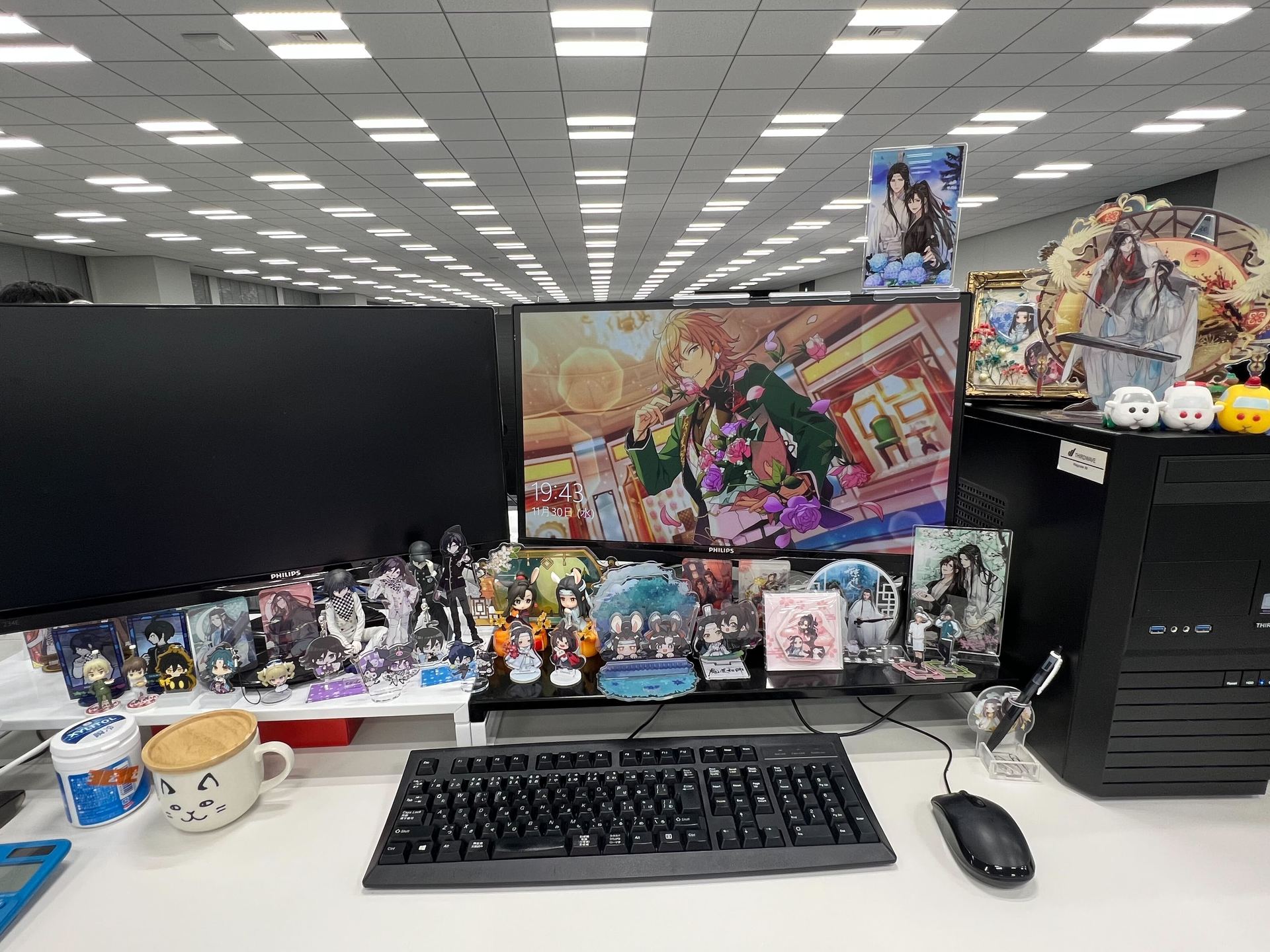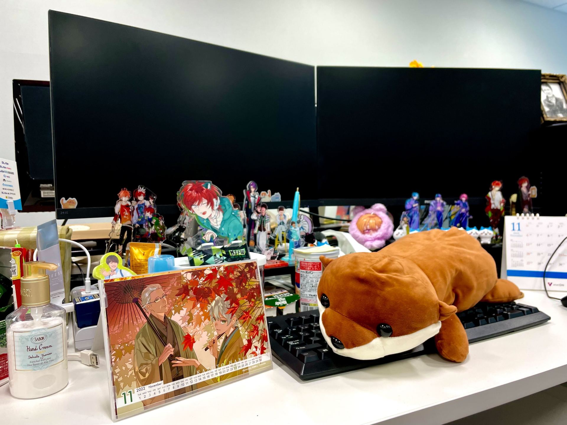 推しを見ながら仕事できる環境を大変気に入っています。 また、推しジャンルが同じ方にデスクのフィギュアを見て話しかけていただくなど、部署を超えた交流のきっかけにもなりおすすめです。