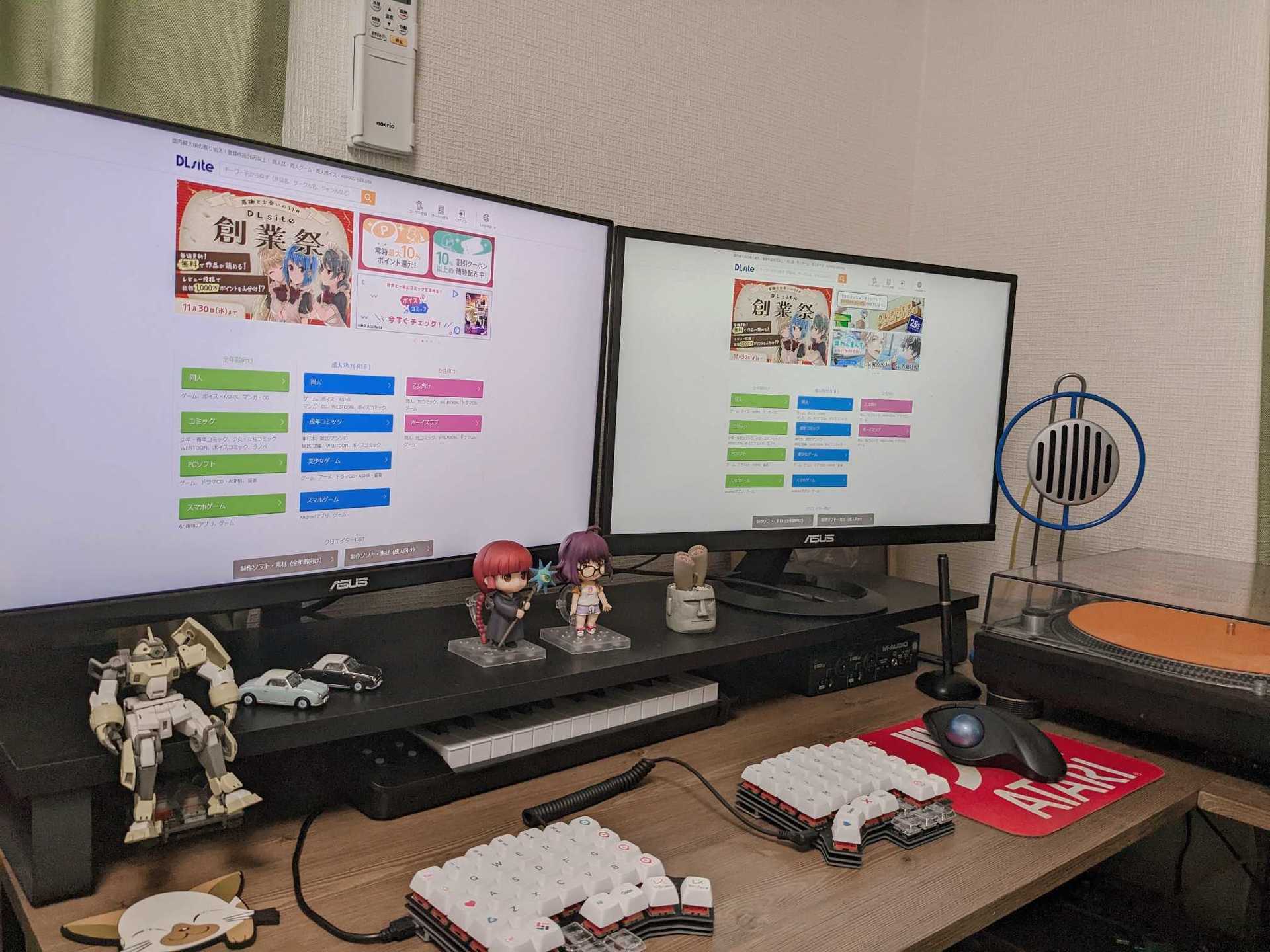 広さの話でいうとウルトラワイドディスプレイ(34インチ、3440px×1440px)も手放せなくなりました。コレのおかげでさまざまな作業効率がぐーーんと上がります。