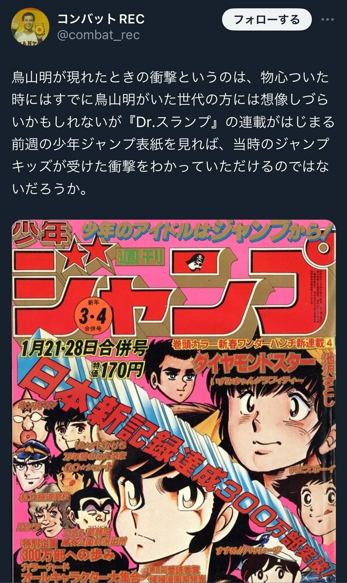 【画像】Dr.スランプ連載前のジャンプ連載陣、あまりに濃すぎるwww