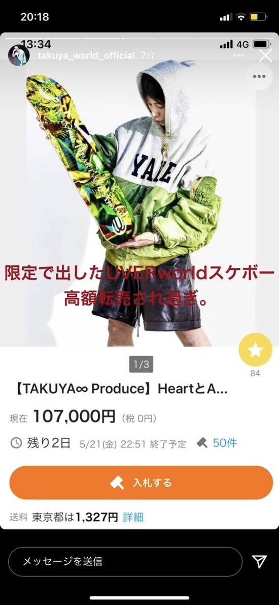 UVERworld・TAKUYA∞「転売されてた限定グッズ全部買い戻したわ。シリアルナンバーで誰か特定するからな」