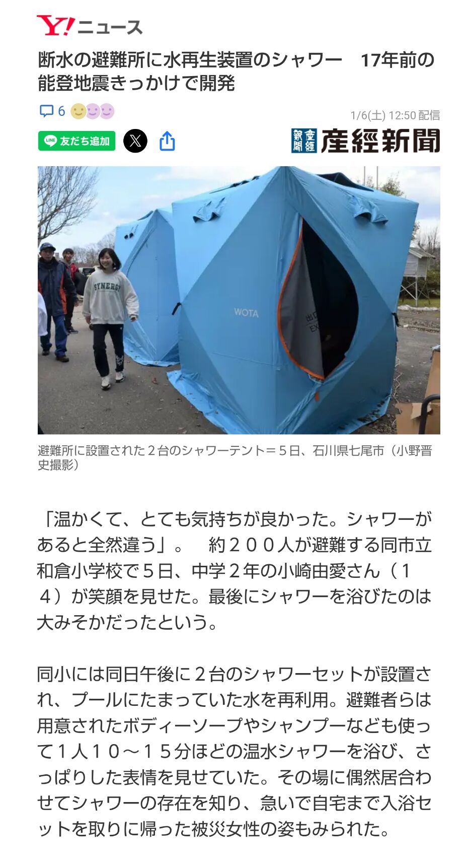 【画像あり】「7日ぶりのお風呂気持ちいい」JC(14)が仮設シャワーを15分堪能