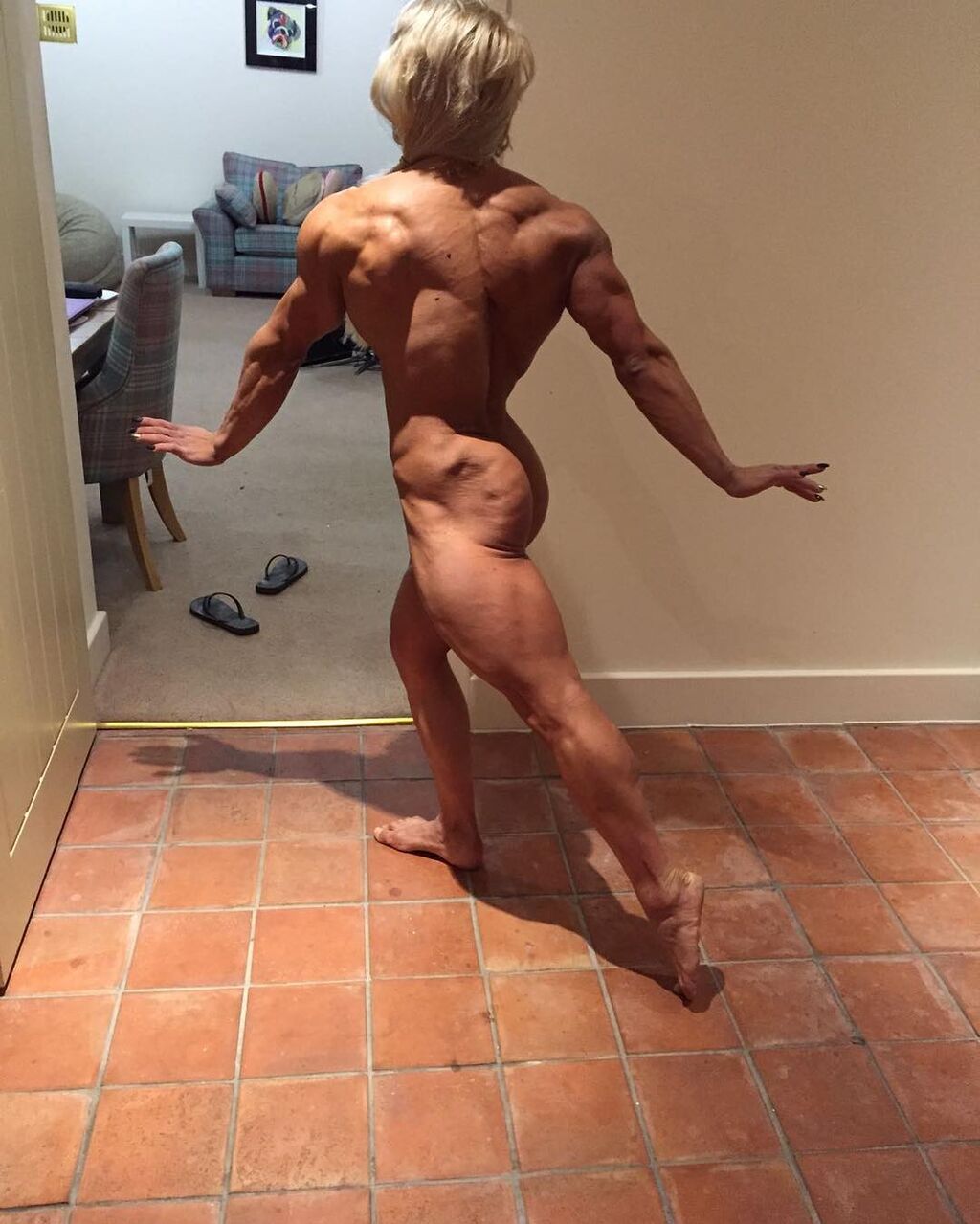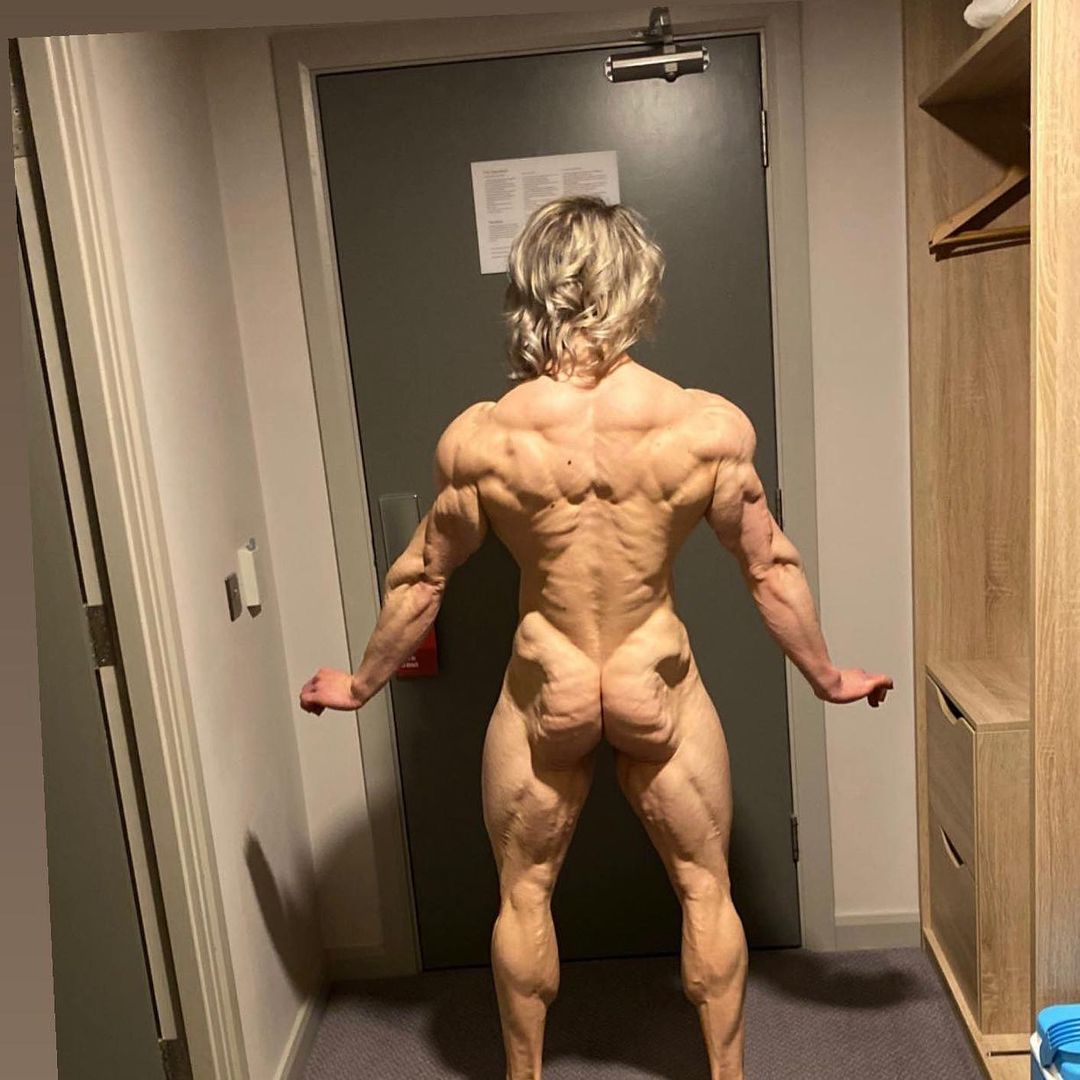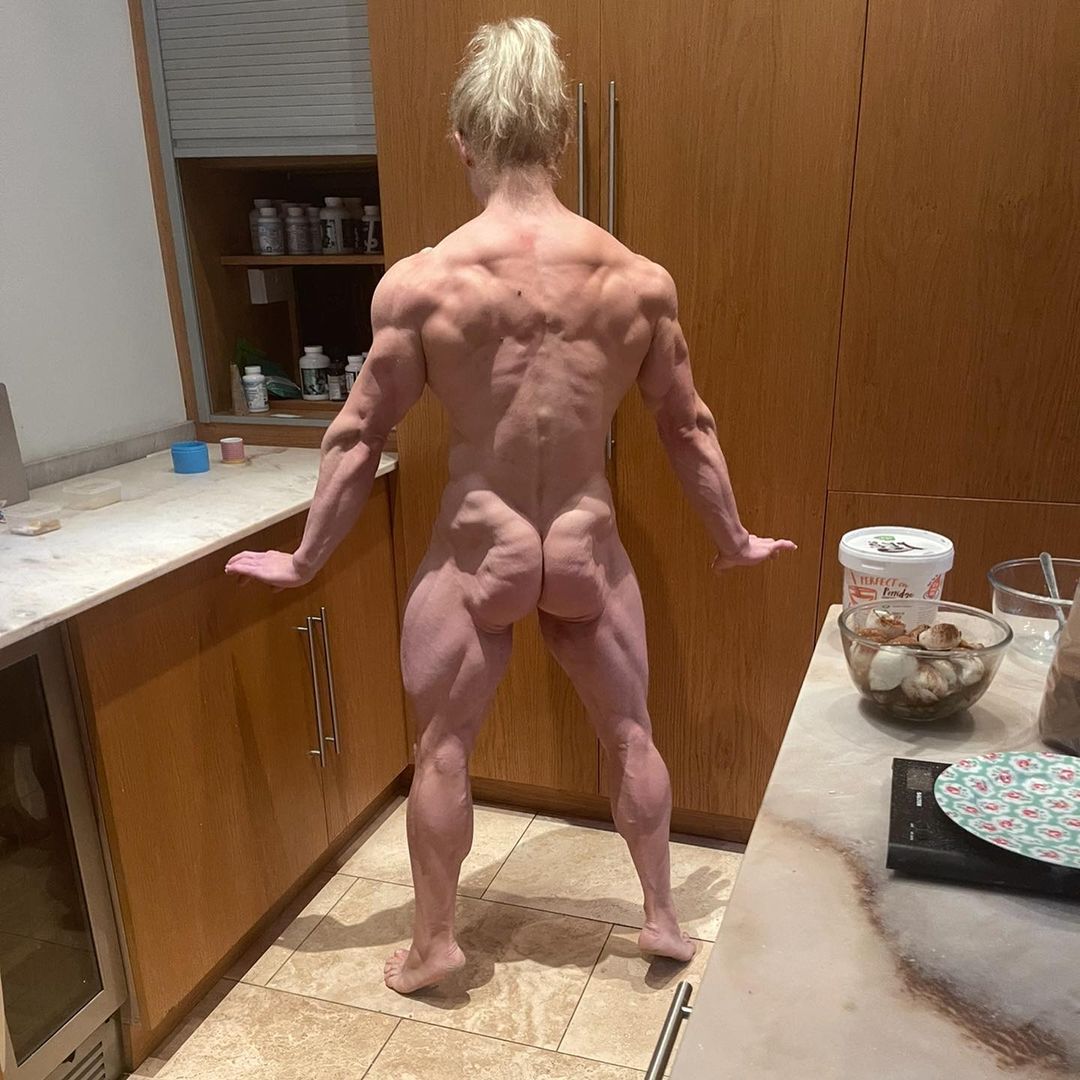 【画像あり】ブロンドヘアーの白人筋トレ女子さん、裸で自撮りしまくる