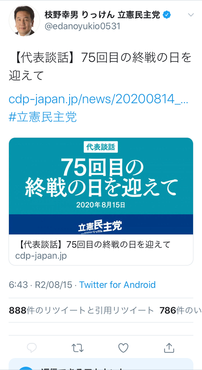 URLhttps://twitter.com/edanoyukio0531/status/1294389092138938369転載元スレッド:http://hayabusa3.2ch.sc/test/read.cgi/news/1597519344/