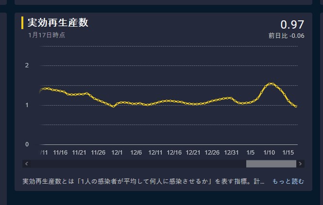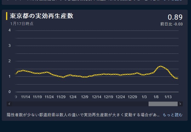 東京都の実効再生産数 0.89 前日比 -0.03 1月17日時点