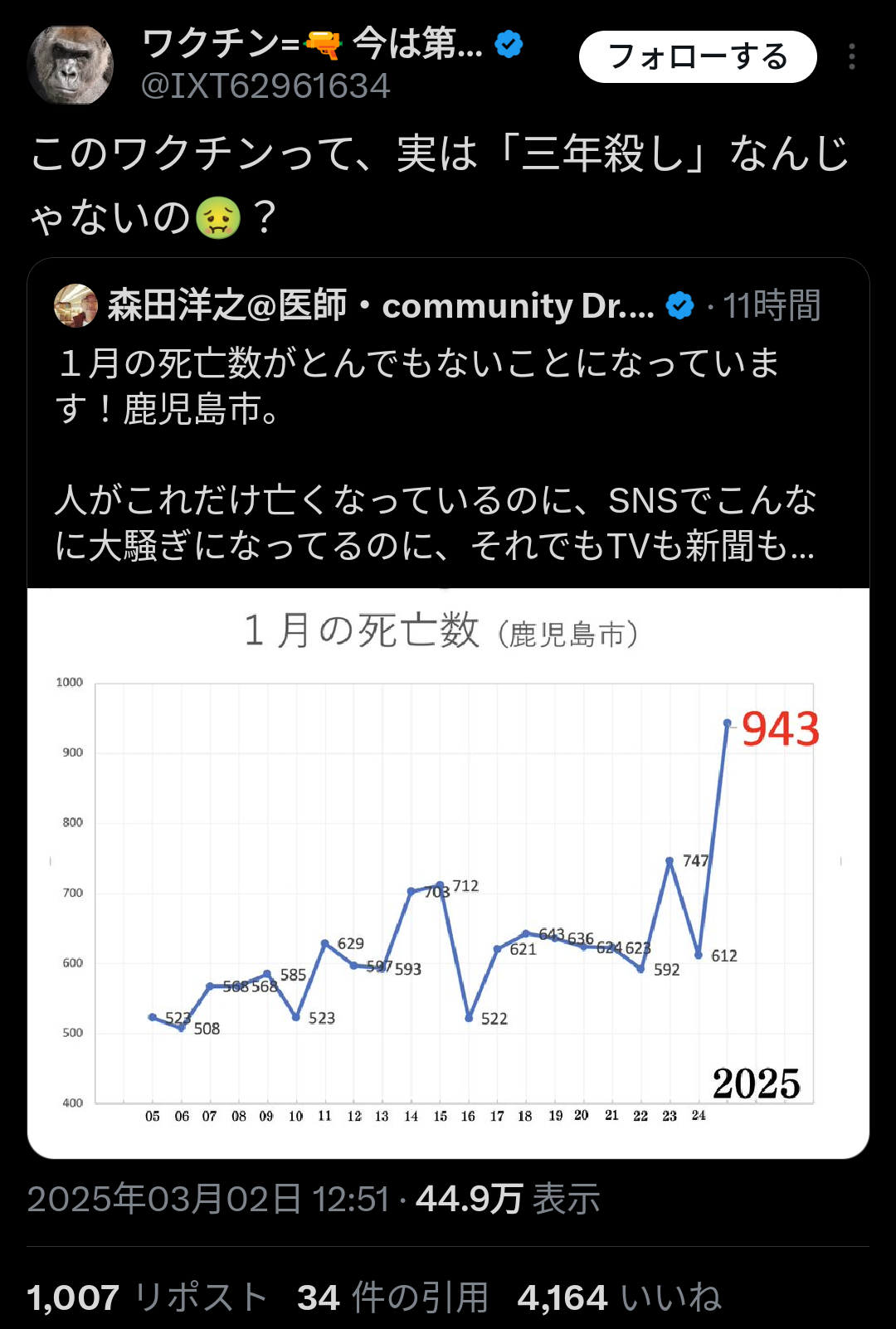 1 : 以下、?ちゃんねるからVIPがお送りします :2025/03/02(日) 20:57:01 ID:eUxYps5t0.netこのワクチンって、実は「三年殺し」なんじゃないの🤢? https://t.co/g36PBc4tv6— ワクチン=🔫 今は第三次世界大戦中🚨 (@IXT62961634) March 2, 2025転載元スレッド:https://viper.2ch.sc/test/read.cgi/news4vip/1740916621/