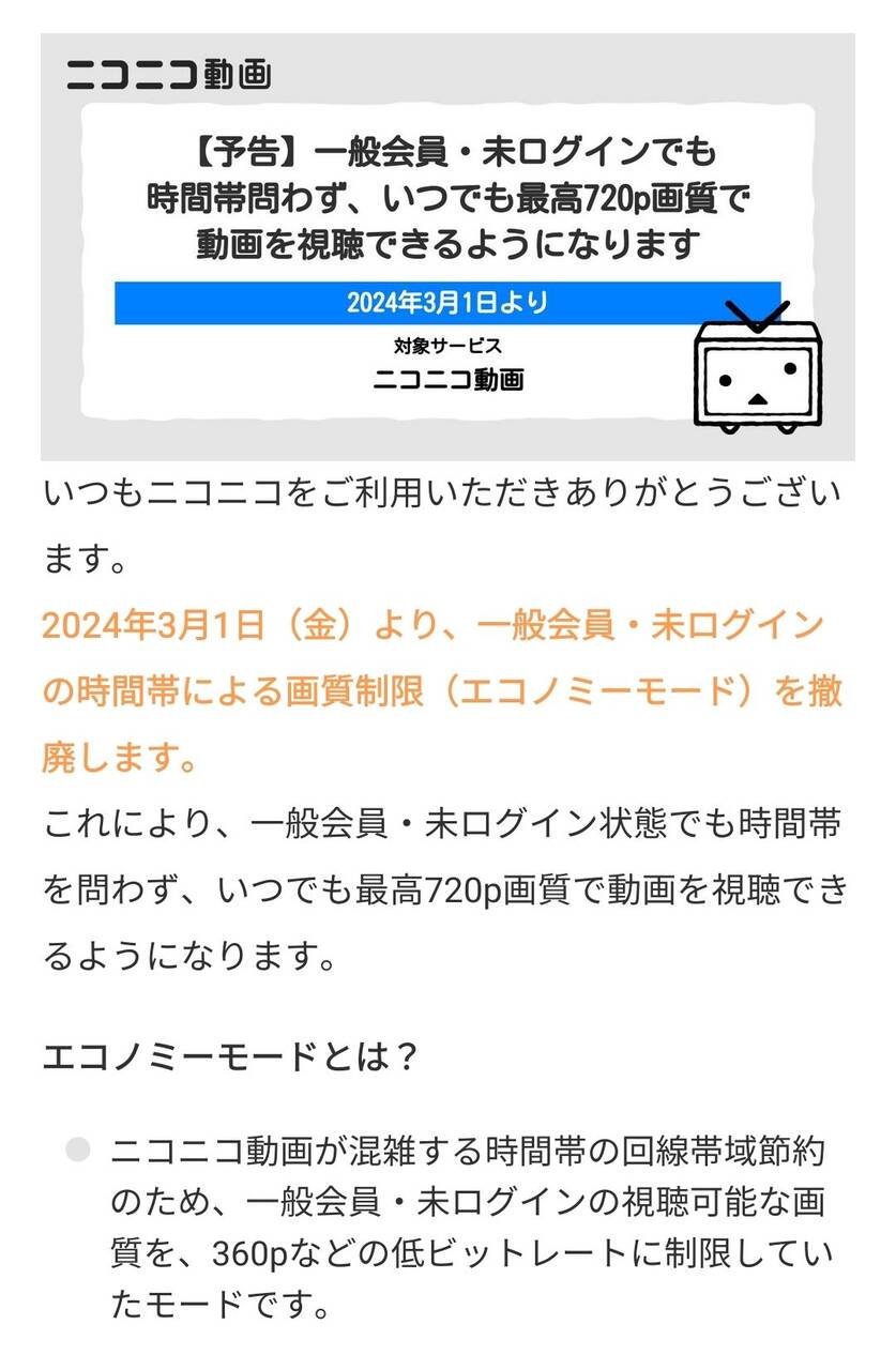 【朗報】ニコニコ動画さん、有料会員限定だった720pをついに無料会員にも開放してしまうwww
