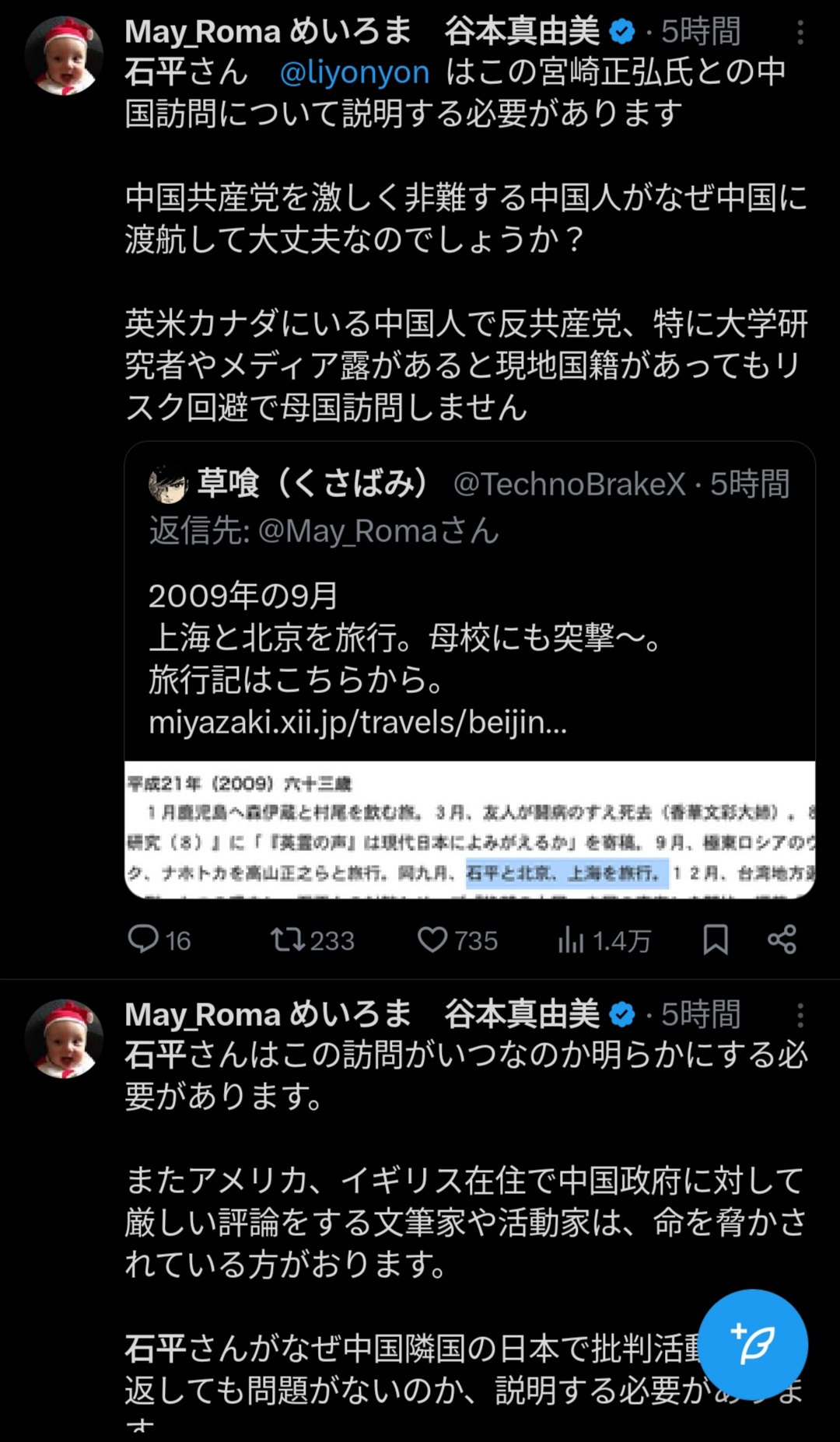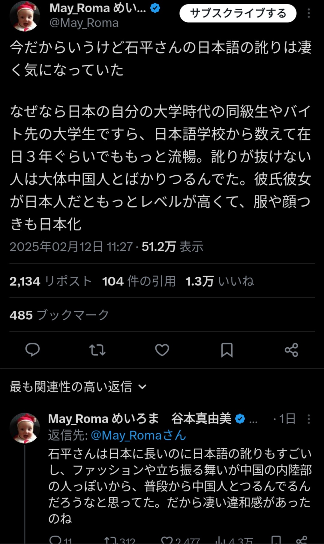 めいろま「石平さんは中国訛りすごすぎて立ち振る舞いも中国内陸部の人っぽい!違和感!」
