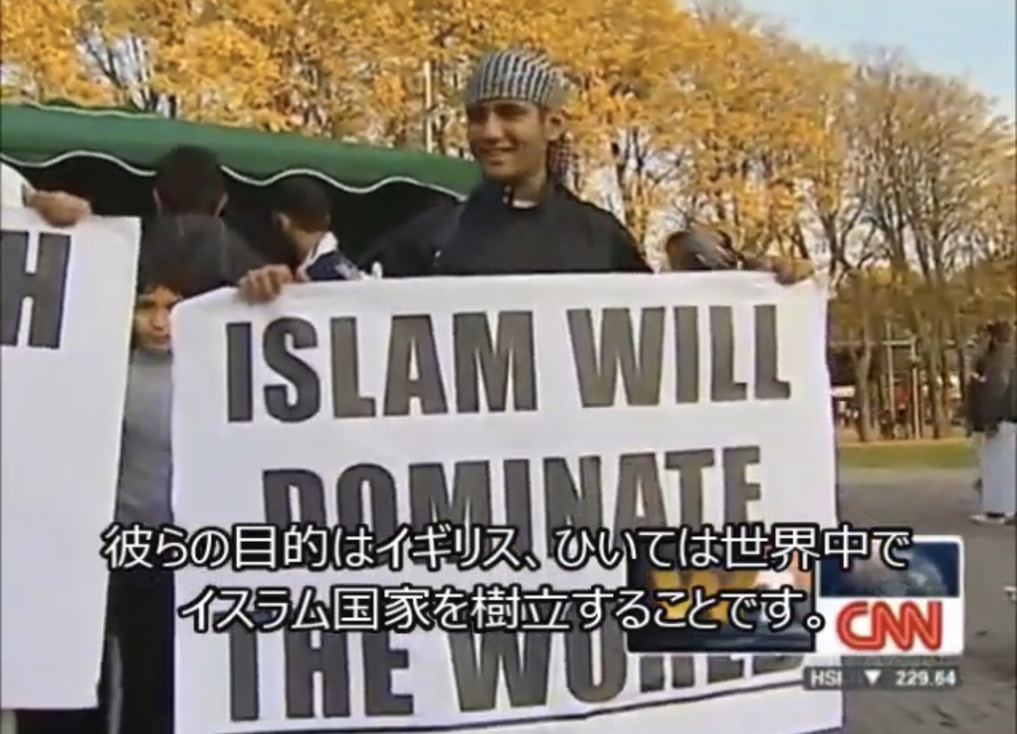 「我々はイギリスとヨーロッパでイスラムとシャリーアが広がるのを止められないとここに宣言します。」