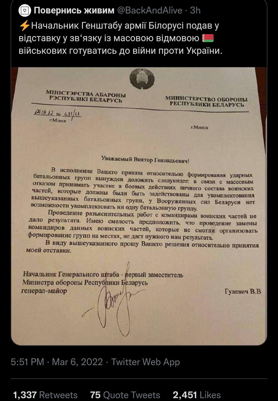 ウクライナ参戦を命じられたベラルーシ軍。大量の兵士の拒否により参謀総長が辞表提出
