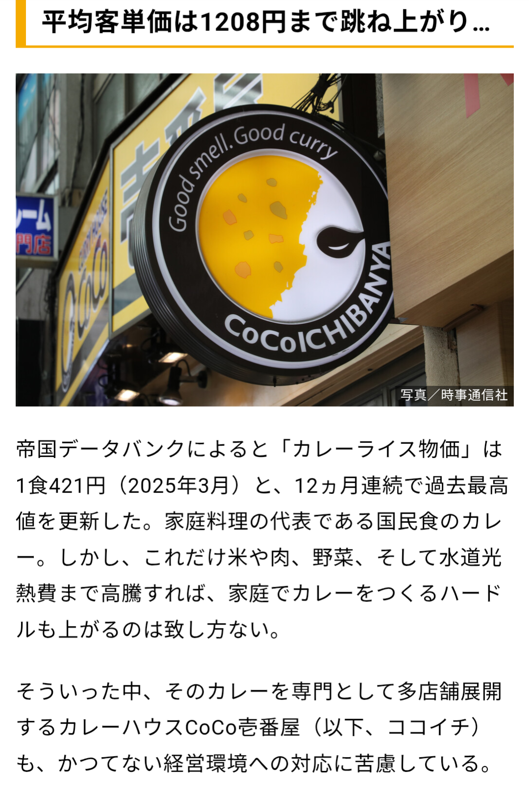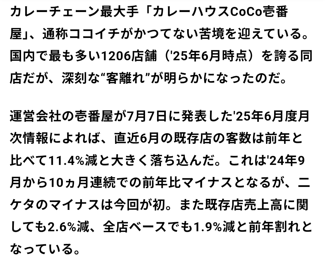 ココイチに「過去最大級の客離れ」が起きていた…!《カレー1200円》がもたらした「あまりに重すぎる代償」(中村 清志) | マネー現代 | 講談社https://gendai.media/articles/-/154680転載元スレッド:https://viper.2ch.sc/test/read.cgi/news4vip/1752535418/
