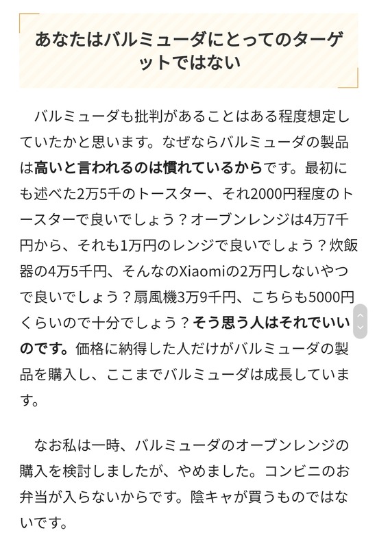バルミューダはブランドだから高くない、