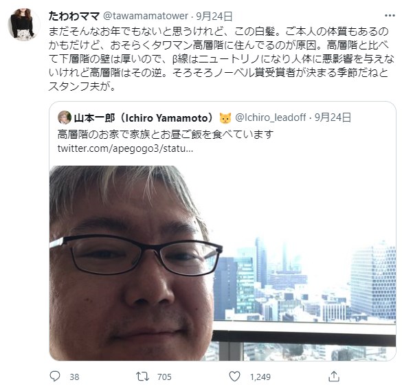 タワーマンションに住んでいるという主婦のTwitterアカウント「たわわママ」が話題となっている。「たわわママ」は9月22日に入りアカウントを作ったようでその投稿内容は次の様なもの。(省略)全文