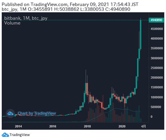 1 : [sage] :2021/02/09(火) 17:58:07.74 ID:2kbsYUs10 ビットコイン(BTC)が9日夕方、初めて1BTC=500万円に乗せた。1月7日に400万円に乗せてからわずか約1カ月。年初からは1.7倍(20年12月31日終値は299万4152円)と勢いが止まらない。 (省略)全文ビットコインが初の500万円台乗せ、年初来では1.7倍と勢い止まらずhttps://finance.yahoo.co.jp/news/detail/20210209-00000004-mosf-bus_all関連スレ【超緊急速報】仮想通貨ビットコイン史上最高値更新 450万円突破きたああああああああhttps://hayabusa9.5ch.net/test/read.cgi/news/1612789197/【給付金バブル】仮想通貨ビットコイン、400万円wwwwwwwwwwwwwwwwwwwwhttps://hayabusa9.5ch.net/test/read.cgi/news/1610058519/【勝ち組速報】仮想通貨ビットコイン350万円突破キタ━━━━━(=゚ω゚)人(゚ω゚=)━━━━━!!!https://hayabusa9.5ch.net/test/read.cgi/news/1609659766/仮想通貨ビットコイン、勢い止まらず300万円射程圏内 億り人続出wwwwwwwhttps://hayabusa9.5ch.net/test/read.cgi/news/1609026882/転載元スレッド:http://hayabusa3.2ch.sc/test/read.cgi/news/1612861087/