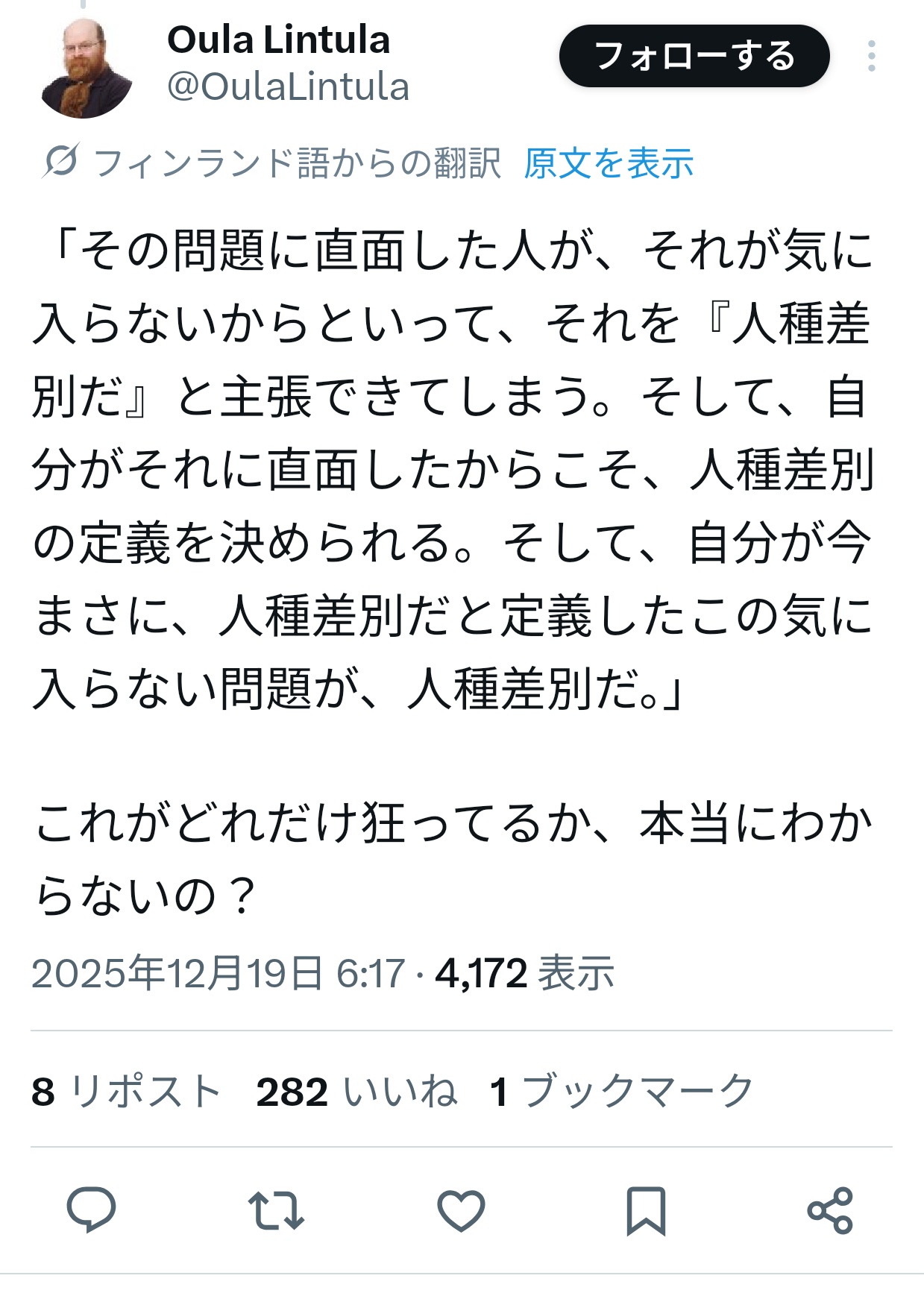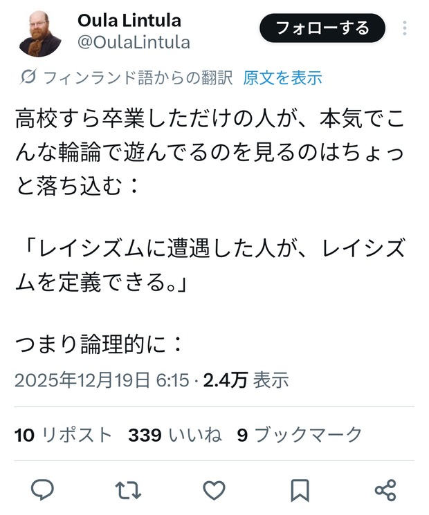 1 : 以下、?ちゃんねるからVIPがお送りします :2025/12/20(土) 15:04:12.769 ID:jqG1D6VfM.net人権大国のはずなフィンランド人さんってマジでこの程度の認識なんすね