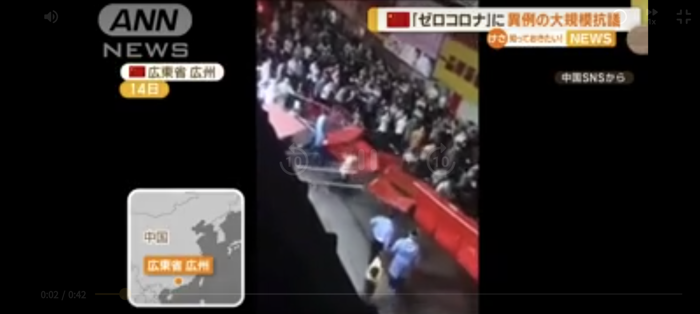 中国 ゼロコロナに異例の大規模抗議…封鎖解除求め