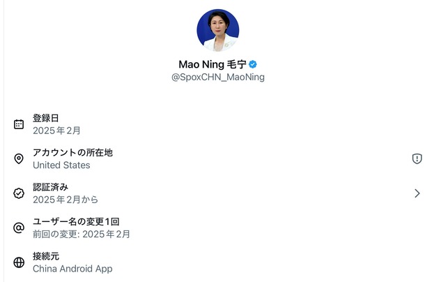 中国の毛報道官、Xの投稿でVPNを利用し、発信元が「アメリカ合衆国」になっていることが判明w🤭