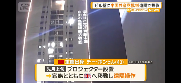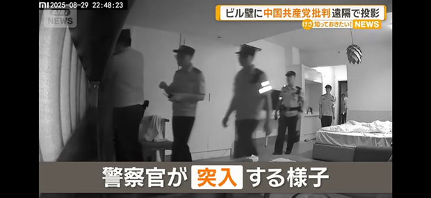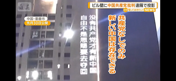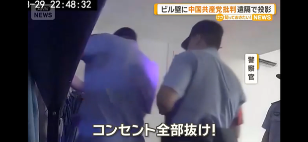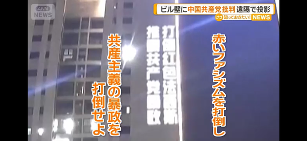 中国の高層ビルに『共産党の暴政を打倒せよ』との文字が浮かび上がる→警察官