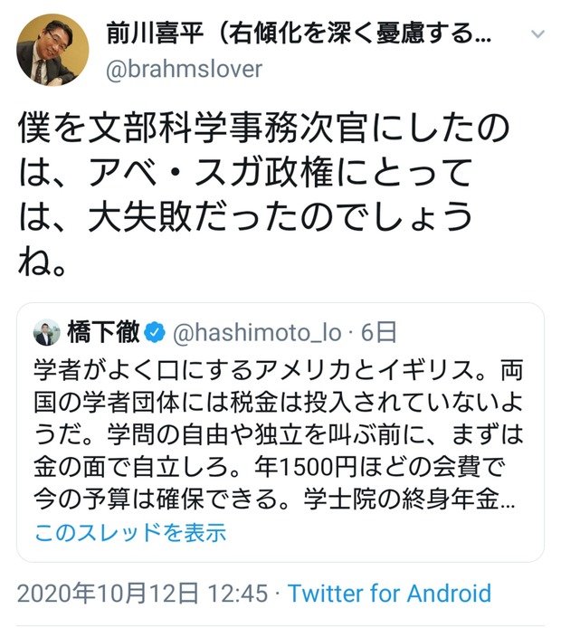 — 前川喜平(右傾化を深く憂慮する一市民) (@brahmslover)
